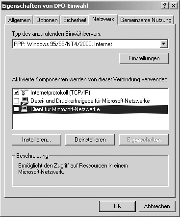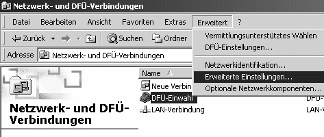 - Eigenschaften (Rechte Maustaste) von DFÜ-Verbindung aufrufen