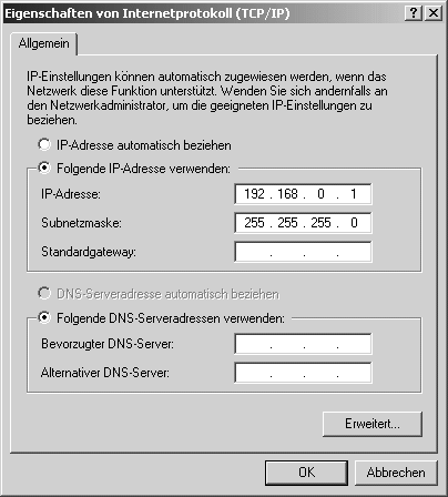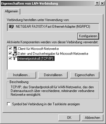 Folgende Anleitung bezieht sich auf eine Standardinstallation von Windows2000 Professional und dem
