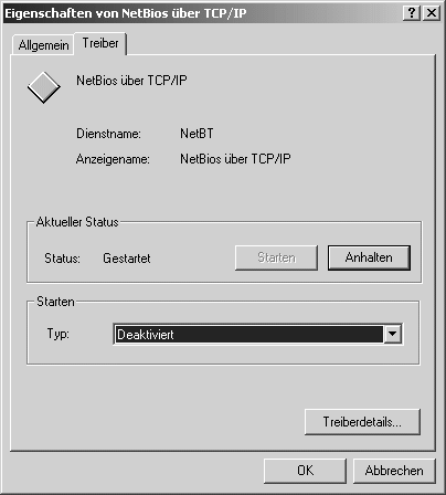 - Entbinden der Netbiosdienste (netbios-ssn, netbios-ns, netbios-dgm) von dem DFÜ-Netzwerk (Internetverbindung)